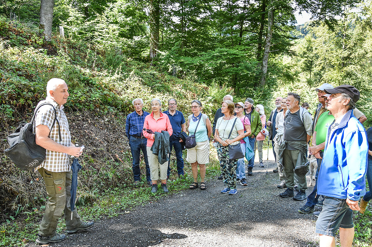 Revierförster Markus Byland erzählte Wissenswertes über die Bewirtschaftung des Ortsbürgerwalds, der vor allem unter Trockenheit leidet.