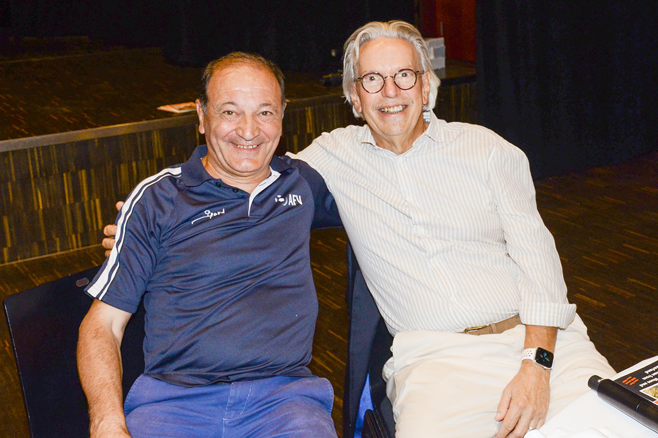 Luigi Ponte, der in Lupfig wohnende Präsident des Aargauer Fussballverbands, AFV, freute sich zusammen mit Livio Plüss über den Jubiläumsabend. (Bild: mw)