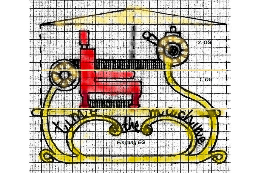 Erste Skizze der «Zeitmaschine» mit den drei Ebenen. (Bild: zVg)