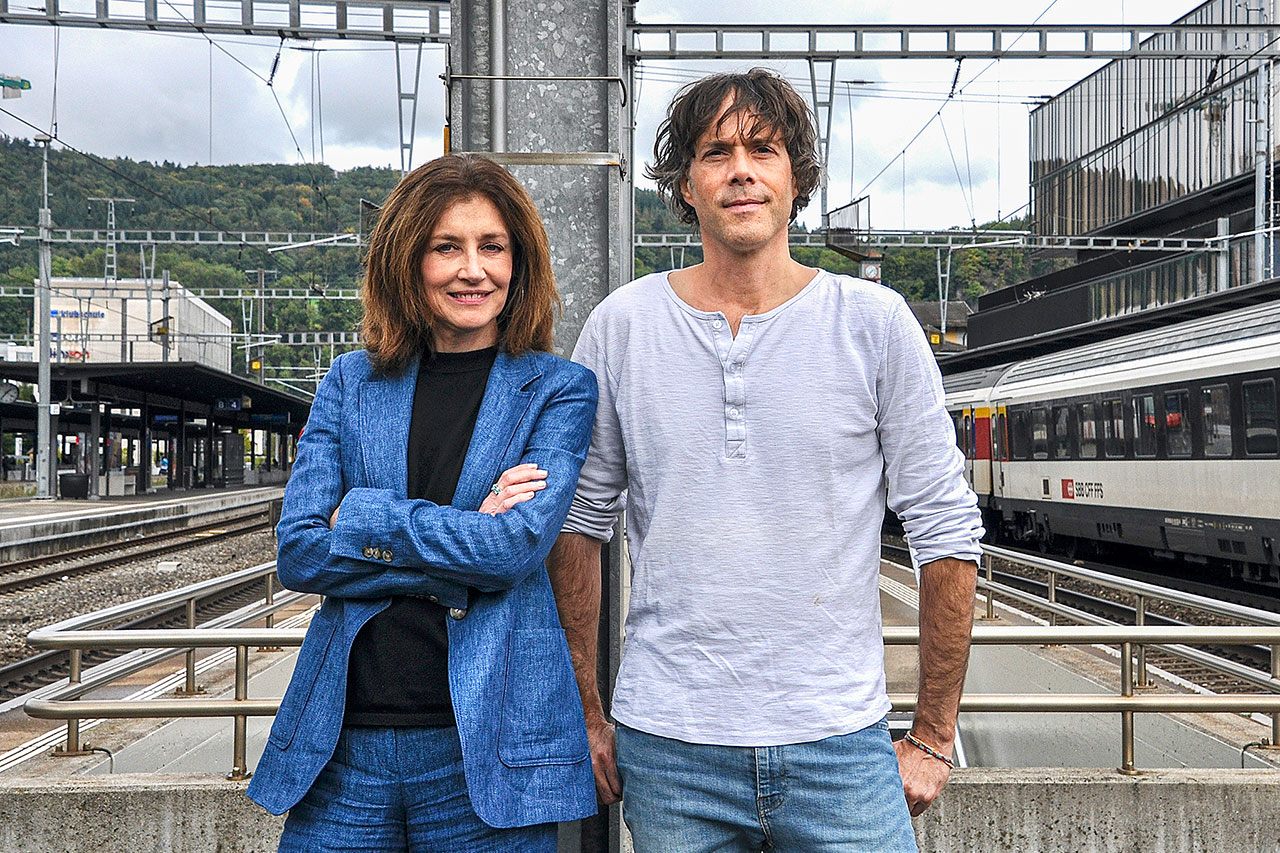 Sängerin Sina und Sänger Adrian Stern auf dem Bahnhof Baden. (Bild: rhö)