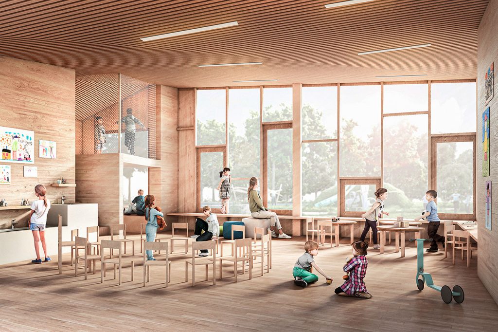 Hell und freundlich: der Innenbereich des geplanten Doppelkindergartens. (Bild: zvg)