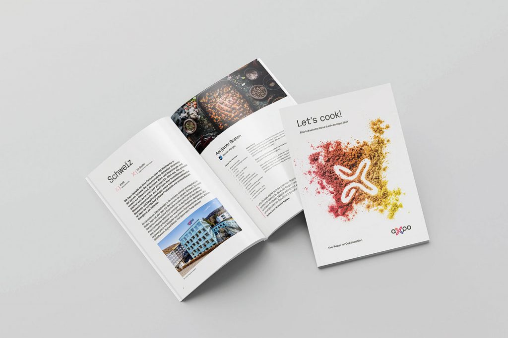 Beim Energiekonzern Axpo arbeiten mehr als 5000 Menschen in über dreissig Ländern. Vielfalt und Internationalität des Unternehmens haben die Verantwortlichen auf die Idee gebracht, zu Weihnachten ein Kochbuch mit 42 Lieblingsrezepten ihrer Mitarbeitenden herauszugeben. In «Let’s cook» macht die Axpo auf 88 Seiten eine kulinarische Reise durch die ganze Welt: Vom «Aargauer Braten» (Schweiz) über finnische Karlajanpiirakka bis zu Zucchini in Paradiso aus Italien. CEO Christoph Brand hat sogar ein Familienrezept beigesteuert – Beerenpudding.