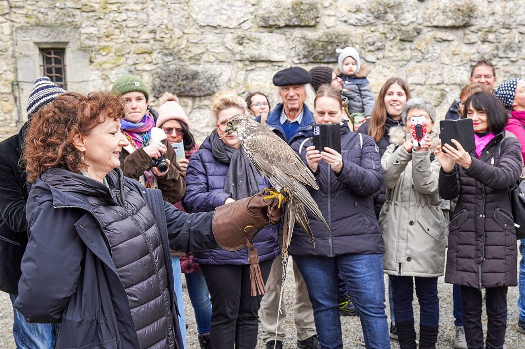 Museum Aargau eröffnete das Museumsjahr diesmal auf Schloss Habsburg. Ein Falkner gab dabei Einblicke in die alte Kunst der Beizjagd.