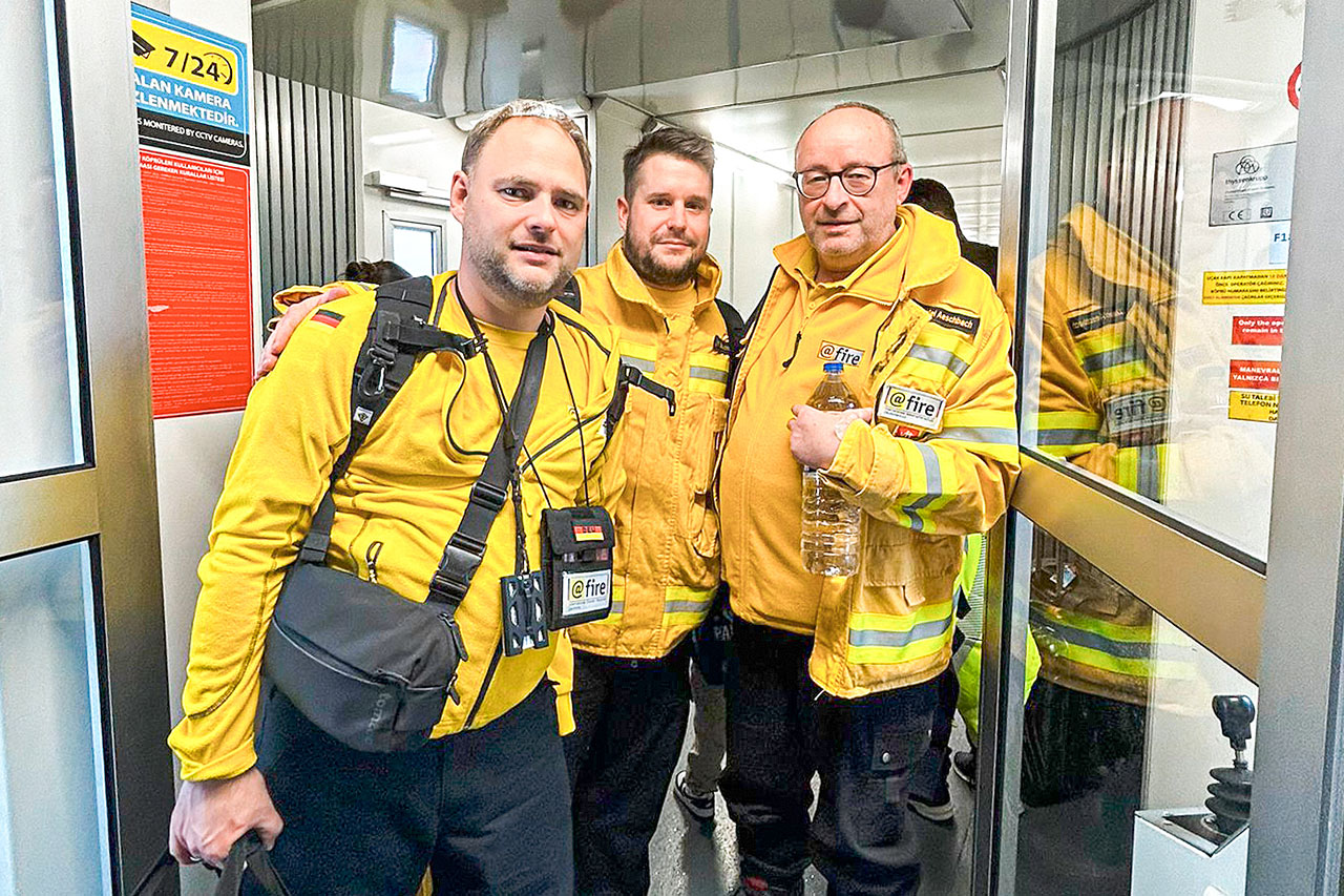 Aber auch schöne, emotionale Momente treiben den Beteiligten noch lange Tränen in die Augen. Etwa der Abschied aus der «Base of operation» in Kahramanmaras. «Als wir am Sonntag zum Flughafen Adana aufbrachen, sagten uns die Menschen, wir seien Engel für sie, wie Brüder», erzählt der erfahrene Feuerwehrmann. Die internationalen Helfer haben den Zurückbleibenden Gerätschaften, aber auch Schlafsäcke und Kleider überlassen. Von Adana fliegt der @fire-Trupp nach Istanbul. Dort bahnt die Polizei den Weg durch die Menge für die freiwilligen Helfer aus Deutschland, Österreich, der Schweiz und aus Armenien. «Beim Metalldetektor standen die Beamten Spalier, während wir in Vollmontur durch den Bogen schritten, und applaudierten», erzählt Aeschbach bewegt.