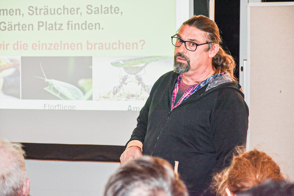 Dennoch sollten ein paar Grundregeln beachtet werden. In jeden Garten gehören Blumen, Sträucher, Gemüse und Wasser (möglichst aus einer Regentonne). Die Pflanzensamen streut man am besten direkt im eigenen Garten wieder aus, da diese Erbinformationen weitergeben und spätere Generationen dadurch besser wachsen. «Respektieren Sie im Garten alle Tiere, auch Läuse, Spinnen und Wespen – sie sind ebenso wertvoll wie Igel oder Vögel. Als Nahrungsproduzenten oder Futtermittel für andere», mahnte der Gärtnermeister. Und generell soll man eine regulierte Eigendynamik zulassen: «Lieben Sie Ihren Garten genau so, wie er ist!»