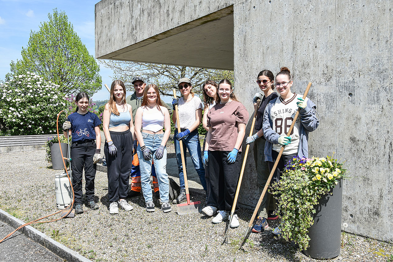 Konzentriert fährt die 15-jährige Ruby mit dem Brenner über den Boden und versengt das feine Unkraut im Kiesbett. Andere Jugendliche jäten von Hand mit einer Harke in den Kieswegen rund um den Friedhof Freienwil. Unter Aufsicht von Stefan Näf, dem Leiter Unterhalt der Gemeinde, sind sie auf dem Friedhof im Einsatz. Die meisten sind Mitglied im Kernteam des Jugendtreffs Greenhouse und zwischen 13 und 15 Jahre alt. Das Kernteam steht der Treffleitung im Betrieb am Mittwoch und Freitag tatkräftig zur Seite und hat deshalb Mitspracherecht beim Programm im Raum unter der Mehrzweckhalle.
