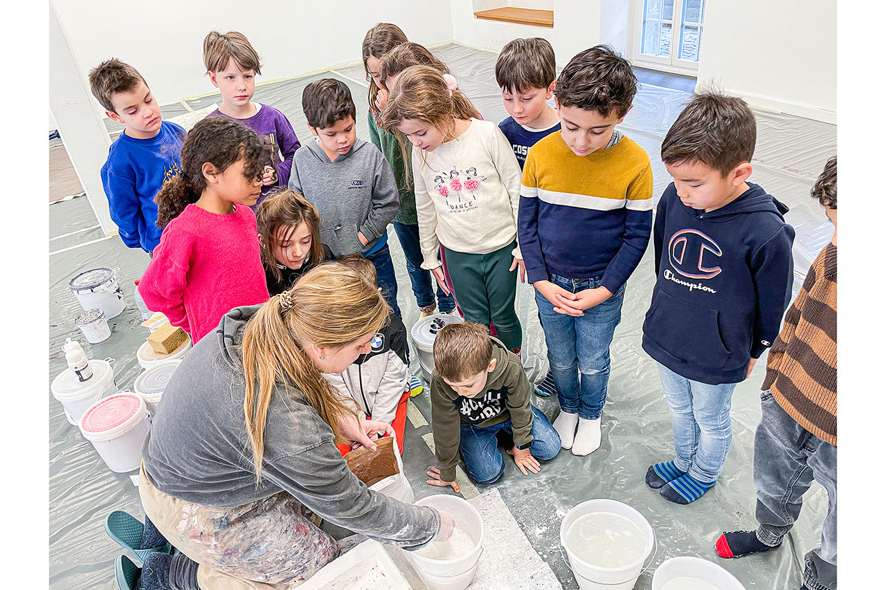 Im Projekt «Aussenzimmer», das in Zusammenarbeit mit dem Zimmermannhaus durchgeführt wird, erleben Schülerinnen und Schüler Unterricht in einem «kreativ-künstlerischen» Kontext. Das Zimmermannhaus mit seinen Ausstellungsräumen und den laufenden Kunstausstellungen bietet dabei die Basis. Die Klassen besuchen mehrere Ausstellungen pro Jahr und nehmen den Kunstraum gemeinsam mit ihren Lehrpersonen als inspirierenden Ort wahr, an dem lustvolle Lernmomente, vielfältige Erlebnisse, prägende Begegnungen und an- und aufregende Entdeckungen gemacht werden können. Das explorative Lernsetting stellt sinnliche Erfahrungen und differenzierte Wahrnehmung als Ergänzung zum Schulzimmer in den Mittelpunkt. Überfachliche Kompetenzen des Lehrplans 21 werden gemeinsam geübt. Kunst liefert dabei den Kontext, steht aber nicht im Fokus. Für die Besuche entwickelte das Projektteam eine Toolbox mit Übungen, Vermittlung per Video sowie vorbereiteten Lernsequenzen.