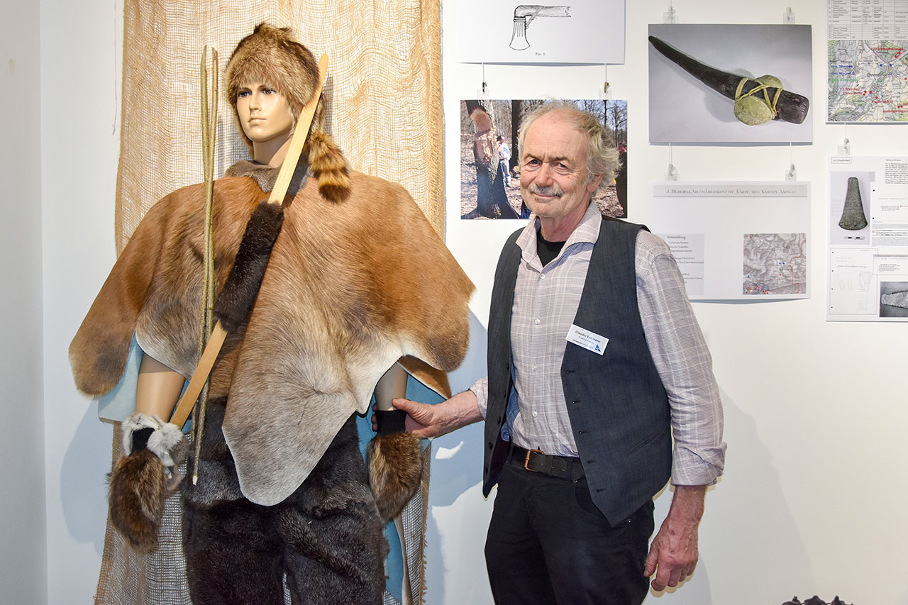 Die überschaubare Grösse der Ausstellung täuscht darüber hinweg, welch grossen Aufwand Claudio Eckmann für die Beschaffung betreiben musste. Manche Fundstücke spürte er in Detektivarbeit auf: «Es hat alles viel Zeit gebraucht.» Auch weil Behörden und Institute oft spät auf E-Mails reagierten. Nicht lang überlegen musste die Schule, die sich sofort für das Thema Steinzeit begeistern konnte. So hat die Klasse 5a bei Bernadette Eggert, Lehrerin für Textiles und Technisches Gestalten (TTG), eine Puppe eingekleidet und mit einem Pfeilbogen ausgerüstet. «Auf ausdrücklichen Wunsch der Klasse heisst sie Manfred», verrät Eckmann schmunzelnd. Die Klasse 2c hat mit TTG-Lehrerin Patrizia dalla Francesca Töpferwaren und Schmuck aus Ton gefertigt. Die Klasse 3a von Sonja Strappazzon hat bronzezeitliche Haselnussstängeli nach altem Rezept hergestellt. Diese konnten beim Apéro degustiert werden. Andrea Schraner und Silvia Bürge von der Kulturkommission haben Pfahlbaubrötli gebacken. Die Ausstellung kann bis Mitte Oktober zu den Schalteröffnungszeiten besucht werden. Termine für individuelle Führungen mit Claudio Eckmann können unter 079 678 87 62 vereinbart werden.