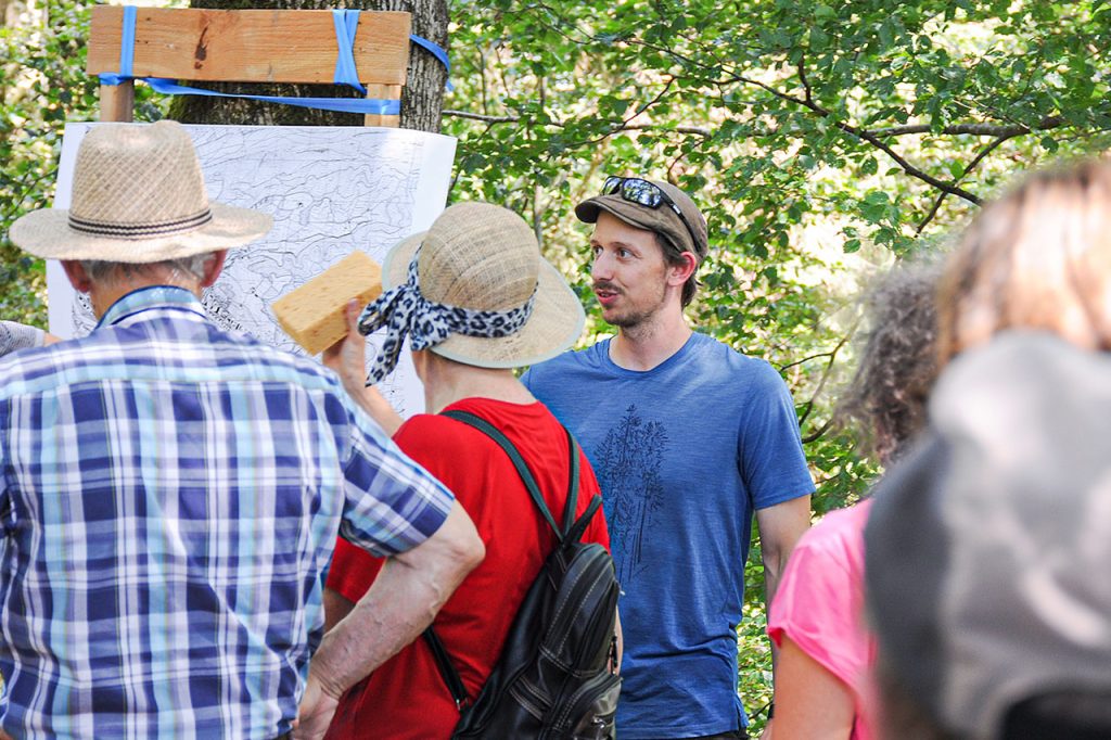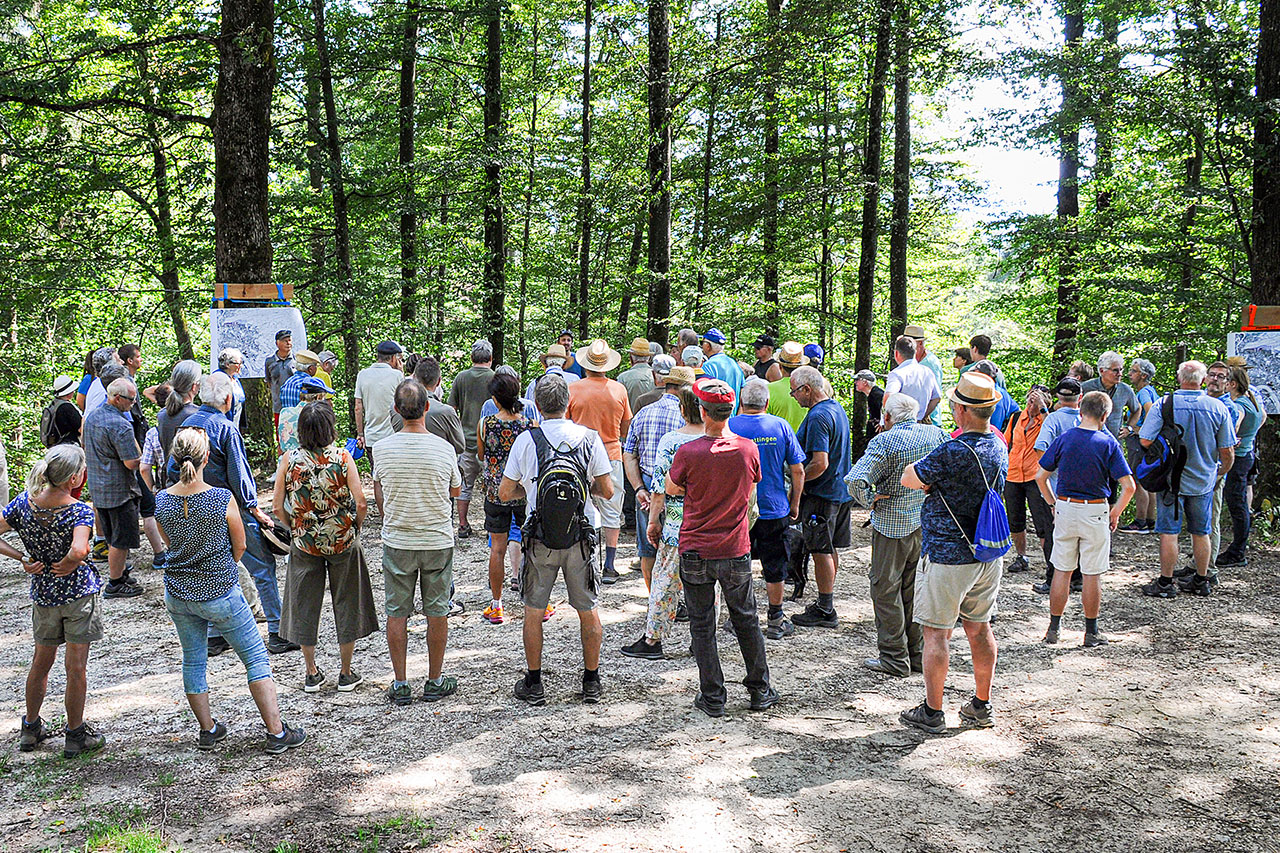 Trotz der Hitze und der Badenfahrt machten sich rund 80 Interessierte auf zum ersten Waldumgang mit Förster Moritz Fischer.
