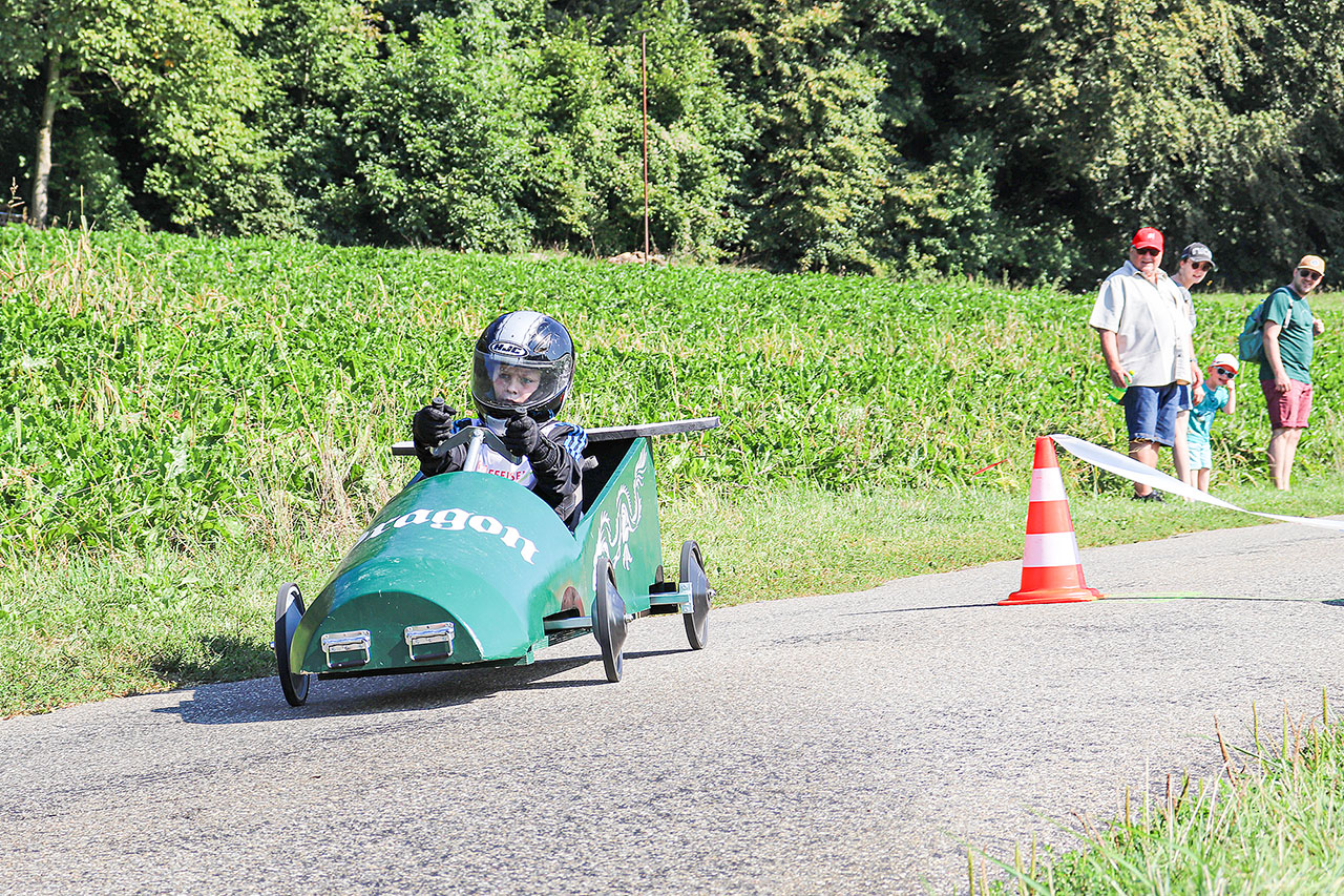 Über 30 Jungpilotinnen und -piloten zwischen 6 und 15 Jahren in drei Kategorien nahmen am diesjährigen Rennen teil. Vor dem Start besichtigten alle gemeinsam die Strecke zu Fuss. Um 11 Uhr startete der erste von zwei Durchgängen. Zahlreiche Schaulustige verfolgten den Grand Prix an diesem hochsommerlichen Tag – Schattenplätze am Rand der Rennstrecke waren sehr gefragt. OK-Präsident Urs Bächli freute sich, dass alle Rennen unfallfrei über die Bühne gingen, und meinte: «Gewonnen haben eigentlich alle, denn die einen Kilometer lange Strecke hat ihre Tücken und ist nicht ganz einfach zu bewältigen.» Nach dem zweiten Lauf bekamen zudem alle Teilnehmenden ein Renn­diplom sowie eine Auszeichnung. Die Schnellsten durften je nach Kategorie eine Bronze-, Silber- oder eine Goldmedaille sowie einen Pokal mit nach Hause nehmen.