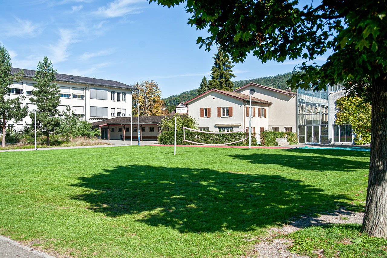 Auf der grünen Sportwiese der Schulanlage Altenburg sollen Container mit acht Klassenzimmern, vier Gruppenräumen und zwei Lehrerzimmern entstehen. (Bild: bkr)
