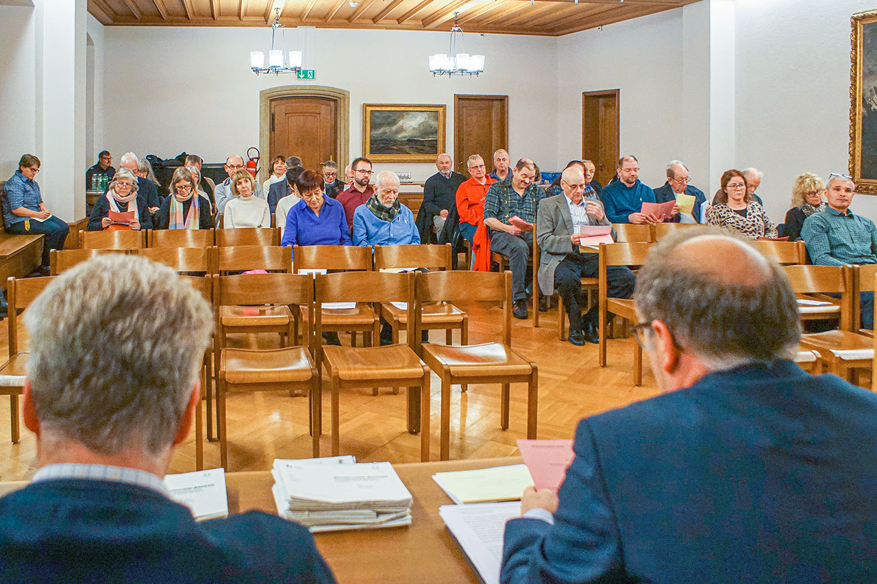 «En famille»: An der Brugger Ortsbürgergemeindeversammlung letzte Woche nahmen 38 von 364 stimmberechtigten Ortsbürgerinnen und Ortsbürgern teil. Sie genehmigten die Anträge des Stadtrats einstimmig. (Bild: hpw)