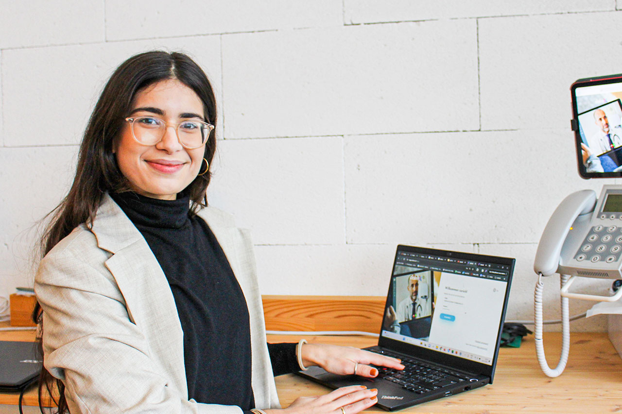 Die Dolmetscharbeit wurde durch die Massnahmen der Covid-19-Pandemie stark getroffen, denn es war schwierig, Einsätze vor Ort durchzuführen. So kam den Gründerinnen und Gründern die Idee, Dolmetscheinsätze über eine Onlineplattform zu ermöglichen, und Dolmx war geboren. «Es ist eine rein webbasierte Lösung», führt Saffari aus. Ein Kunde, beispielsweise ein Spital, loggt sich auf der Onlineplattform ein und erfasst sein Anliegen. Das kann beispielsweise die Verdolmetschung eines Arztgesprächs am Patientenbett sein. Die Vorlaufszeit ist kurz gehalten und beträgt derzeit lediglich 30 Minuten. Die Plattform versendet anschliessend eine E-Mail mit Push-Funktion an die zertifizierten Dolmetscher und Dolmetscherinnen, die freiberuflich für Dolmx arbeiten. Wenn ein Auftrag angenommen wird, können sich beide Gesprächspartner einloggen und per Video das Gespräch starten. «Wir haben hier bei uns eine Testumgebung beispielsweise mit dem Telefon, das an einem Patientenbett befestigt ist», erzählt Saffari. «Der Arzt oder die Ärztin kann dann mit dem Tablet zum Patientenbett gehen und es dort befestigen, sodass wir zu dritt ein Gespräch führen können.»