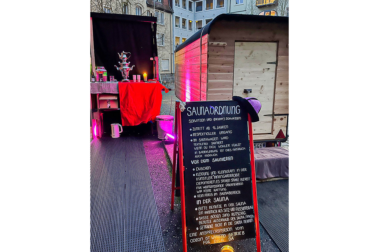 «Wir sind selbst überrascht, wie gut unsere Idee bei den Gästen ankam», sagten Stephan Filati und Sue Luginbühl (Vorstand Kulturhaus Odeon) sowie Olivia Groenke (Administration, Grafik und Stv. Kinobetrieb) erfreut. Als Rahmenprogramm zum mehrfach ausgezeichneten estnischen Film «Smoke Sauna Sisterhood» betrieben die Organisatoren während fünf Tagen, vom 31. Januar bis zum 4. Februar, im Odeon-Wintergarten, im Innenhof des Kulturhauses, eine mobile Holzsauna.
