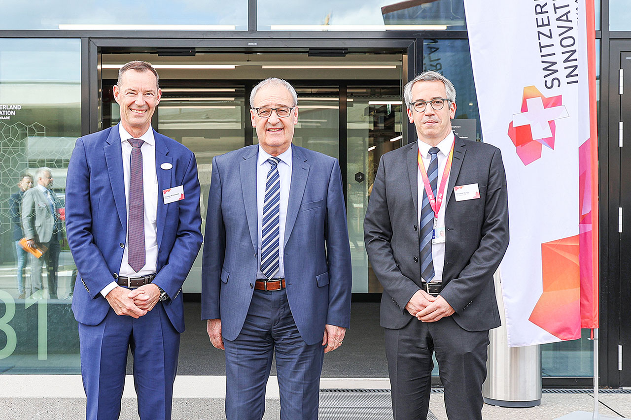 Im Beisein von Bundesrat Guy Parmelin und Volkswirtschaftsdirektor Dieter Egli wurde der Park Innovaare feierlich eröffnet.