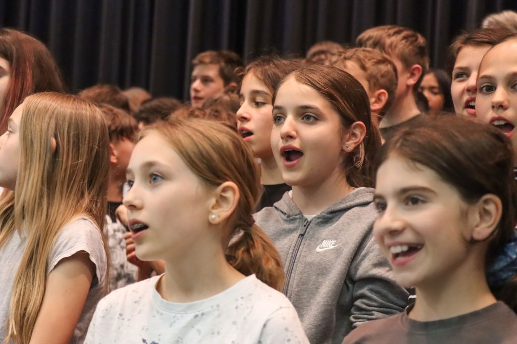 Etwa 180 Kinder aus 9 Klassen bei der Probe.
