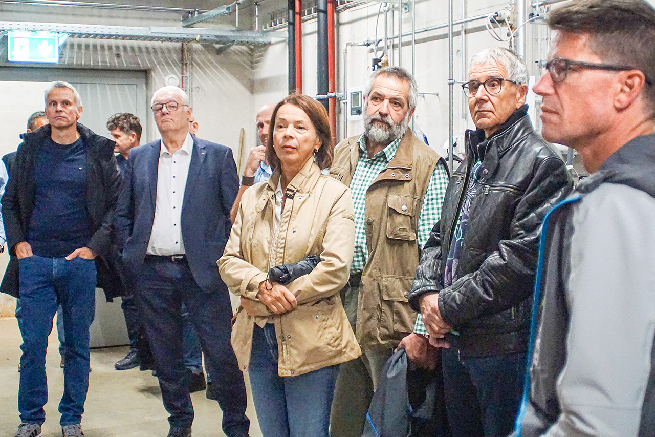 In den vergangenen rund zwei Jahren entstand unterirdisch, angrenzend an das Terrassenbad, die mit Investitionen in Höhe von 9,5 Millionen Franken bezifferte Energiezentrale. «In dieser Summe ist die nicht vorhersehbare Sanierung von Altlasten, die mit 1,3 Millionen Franken zu Buche schlägt, enthalten», so Kreutle. Nach dem Abstieg in die Tiefe offenbarte sich den Teilnehmenden modernste Technik, wobei sicherheitsrelevante Erklärungen im Vordergrund standen. Die Anlage verwendet ein Kältemittel auf Ammoniakbasis, das strengen Brandschutzvorschriften unterliegt. Um bei einem allfälligen Leck die Sicherheit zu gewährleisten, ist dieser Teil der Anlage räumlich getrennt. Um im Ernstfall schnell und effizient reagieren zu können, werden regelmässige Schulungen für das Betriebspersonal und Sicherheitsinspektionen durchgeführt. Sowohl für Wärme als auch für Kälte verfügt die Anlage im danebenliegenden Raum über grosse Speicher. Die grossen Speicherkapazitäten gewährleisten, dass die Anlage auch bei Spitzenlasten zuverlässig arbeitet und damit eine konstante Energieversorgung sichergestellt ist. «Da die Anlage durch ein zentrales Steuerungssystem überwacht wird, können Techniker bei Fehlermeldungen sofort reagieren. Sensoren stellen sicher, dass die Prozesse in der gesamten Anlage störungsfrei und effizient ablaufen», so Kreutle, dessen umfassende Ausführungen mit Applaus verdankt wurden.