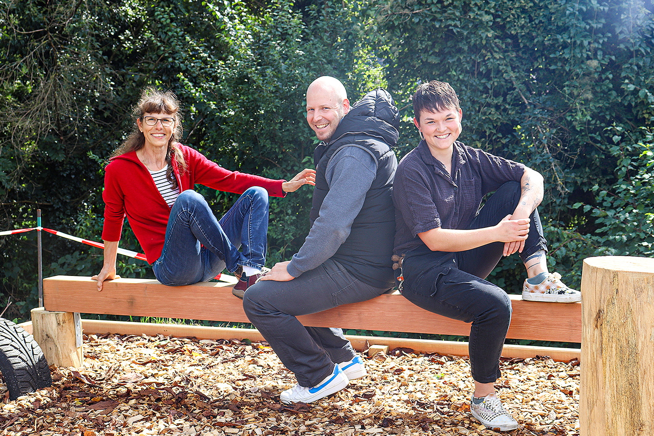 Von links: Maya Sieber (Initiatorin des Obsi-Trails), Matthias Villiger (Projektkoordination) und Tabea Schenker (Koordination Bau). (Bild: zVg)