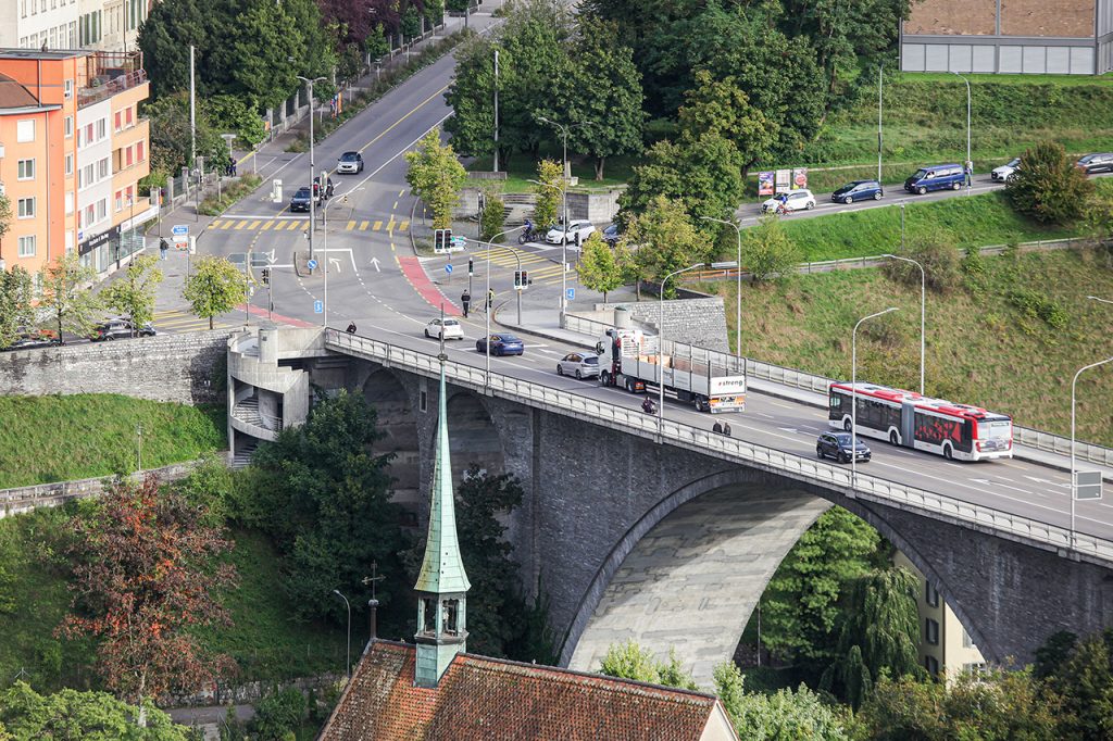 Vorerst sollen am Brückenkopf Ost der Hochbrücke in Baden lediglich sanfte Massnahmen ausgearbeitet und umgesetzt werden. (Bild: sim)