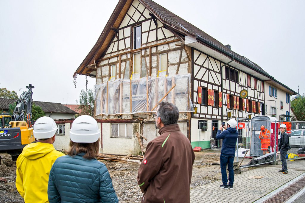 Nicht mehr auf der grünen Wiese fand der Spatenstich statt, weil – so Urs Rey – vor dem eigentlichen Baubeginn einige knifflige Probleme zu lösen waren. So musste die Wand zur «Eintracht» stabilisiert und diverse Leitungen mussten in neue Trassen gelegt werden. Erschwerend ist, dass die Baute ins Grundwasser zu stehen kommt. Das bedingt Pfählungsarbeiten, die in den nächsten Tagen beginnen. Rey sagt dazu: «Es wird keine Rammpfählung geben, sondern mit dem schonenderen Bohrungsverfahren gearbeitet.» Läuft alles nach Plan, steht an Weihnachten das erste Geschoss – und im Sommer 2025 kann der Laden eröffnet werden.