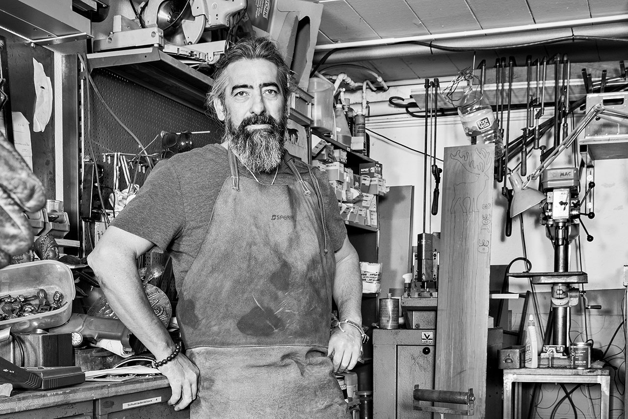 Wenn Claudio Cassano eines seiner Kunstwerke gestaltet, weiss er nie im Voraus, ob er es verkaufen wird oder nicht. Anders ist es bei seinen Auftragsarbeiten von Privatkunden und Firmen. Werke von ihm stehen beispielsweise am Flussufer in Stilli zwischen dem Eventlokal Riviera und einem Wohnhaus. Dort hat er einen 11 Meter langen Fischschwarm aus Stahl kreiert. Für ein Bürogebäude in Schinznach-Dorf schuf er ein riesiges Lichtobjekt aus gepressten Pflanzen und alten Weinfässern, weil die Firmeninhaber eigenen Wein produzieren. Punkto Materialien kennt der Mann keine Grenzen. Ständig tüftelt er an neuen Kombinationen. In letzter Zeit arbeitet er viel mit Bronze. Er schweisst, brennt, schneidet, lötet, schmiedet und hämmert. Bei den handwerklichen Arbeiten kommt ihm sein erlernter Beruf als Spengler zugute, auf dem er nur wenige Jahre arbeitete, bevor er sich mit 24 Jahren als Künstler selbstständig machte. «Ich fand damals für meine erste eigene Wohnung kein Lichtobjekt, das mir gefiel. Deshalb baute ich kurzerhand mein eigenes zusammen», erinnert er sich. Die Reaktionen darauf waren so begeistert, dass er weitere Objekte gestaltete. So fing alles an.