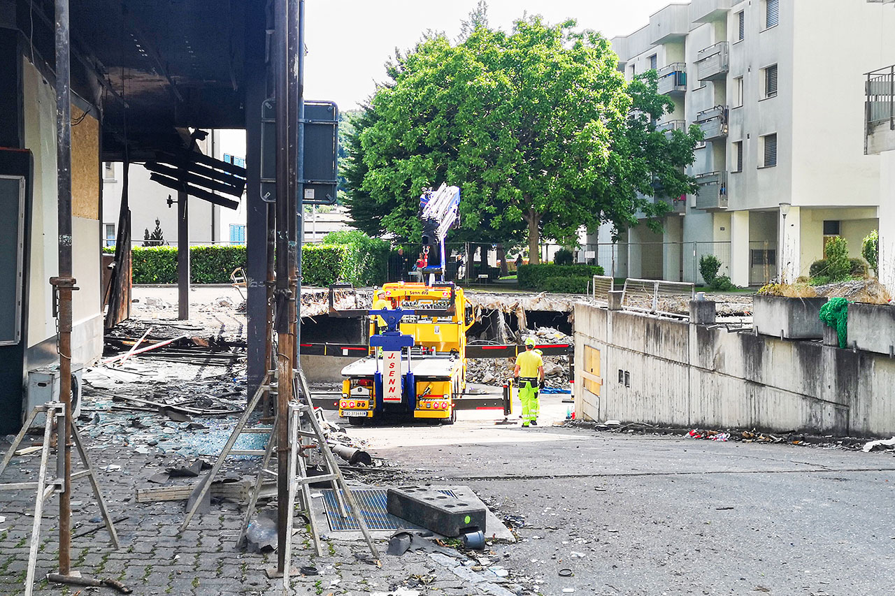 Die aktuellen Zustände dort erinnern uns jedes Mal an die Nacht vom 13. Juni. Aktuell wurde uns von der Verwaltung mitgeteilt, dass die Wiederherstellung und die Instandstellung der Metallfassade mit einem erheblichen Aufwand verbunden seien und deshalb zur Offertstellung ausgeschrieben werden müssten. Seitens der Verwaltung wurde versichert, dass man mit Hochdruck daran arbeite. Man hofft, dass die Wiederherstellung der Fassade bis Frühling/Sommer 2025 abgeschlossen werden kann. Im Anschluss können die Innenräume erneuert werden.