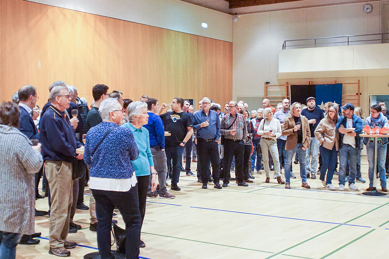 Traditionsgemäss lud der in corpore anwesende Obersiggenthaler Gemeinderat die Einwohnerinnen und Einwohner zum Neujahrsapéro in den Gemeindesaal ein. Damit sowohl die Behördenmitglieder als auch die Verwaltungsmitarbeitenden, welche die Kulturkommission bei der Ausrichtung des Anlasses unterstützten, die wohlverdienten Freitage geniessen konnten, fand der Anlass in der zweiten Januarwoche statt. An den Bistrotischen mit Apérohäppchen wurde angestossen, und die Gespräche waren in vollem Gang, als Frau Gemeindeammann Bettina Lutz Güttler das Mikrofon ergriff und in ihrer Neujahrsansprache auf ein bewegtes Jahr Rückschau hielt sowie einen Ausblick auf ein hoffentlich erfreuliches Jahr gab.