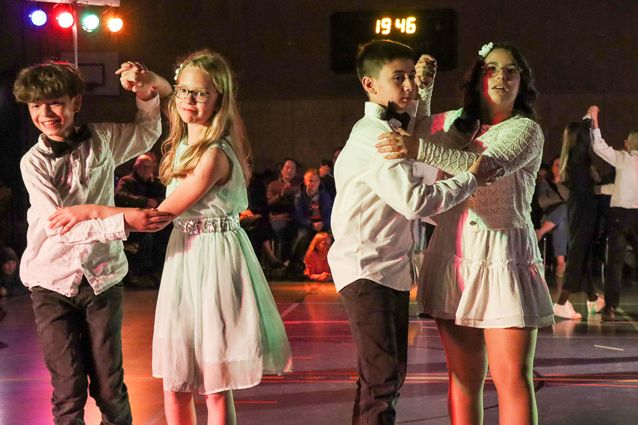 Rund 70 Schülerinnen und Schüler haben neun verschiedene Tanzarten gelernt. Auf einer «Reise um die Welt» ging es zuerst in die Dominikanische Republik, von dort kommt der Merengue. Ein Paar aus der Klasse 5a zeigte den Tanz vor, bevor der Rest der Klasse ebenfalls mittanzte. Ebenso ging es mit dem Foxtrott aus den USA. Die 5b zeigte den Swing (USA) und den Rumba, zu dem das Publikum erfuhr, dass man diesen in seiner Heimat Kuba auch im Sand tanzt. Mit der 5c ging es schliesslich mit dem Tango nach Argentinien und dem Walzer, der ursprünglich aus Österreich stammt, zurück nach Europa. Aufgelockert wurden die Tanzauftritte mit Zwischennummern, die von Schülern gestaltet wurden. Sie spielten einen Sketch, erzählten Geschichten und veranstalteten ein Quiz. Dabei erfuhr man, dass in den letzten zehn Jahren über 700 Schulklassen in der ganzen Schweiz bei «Dancing Classroom» mitgemacht haben.