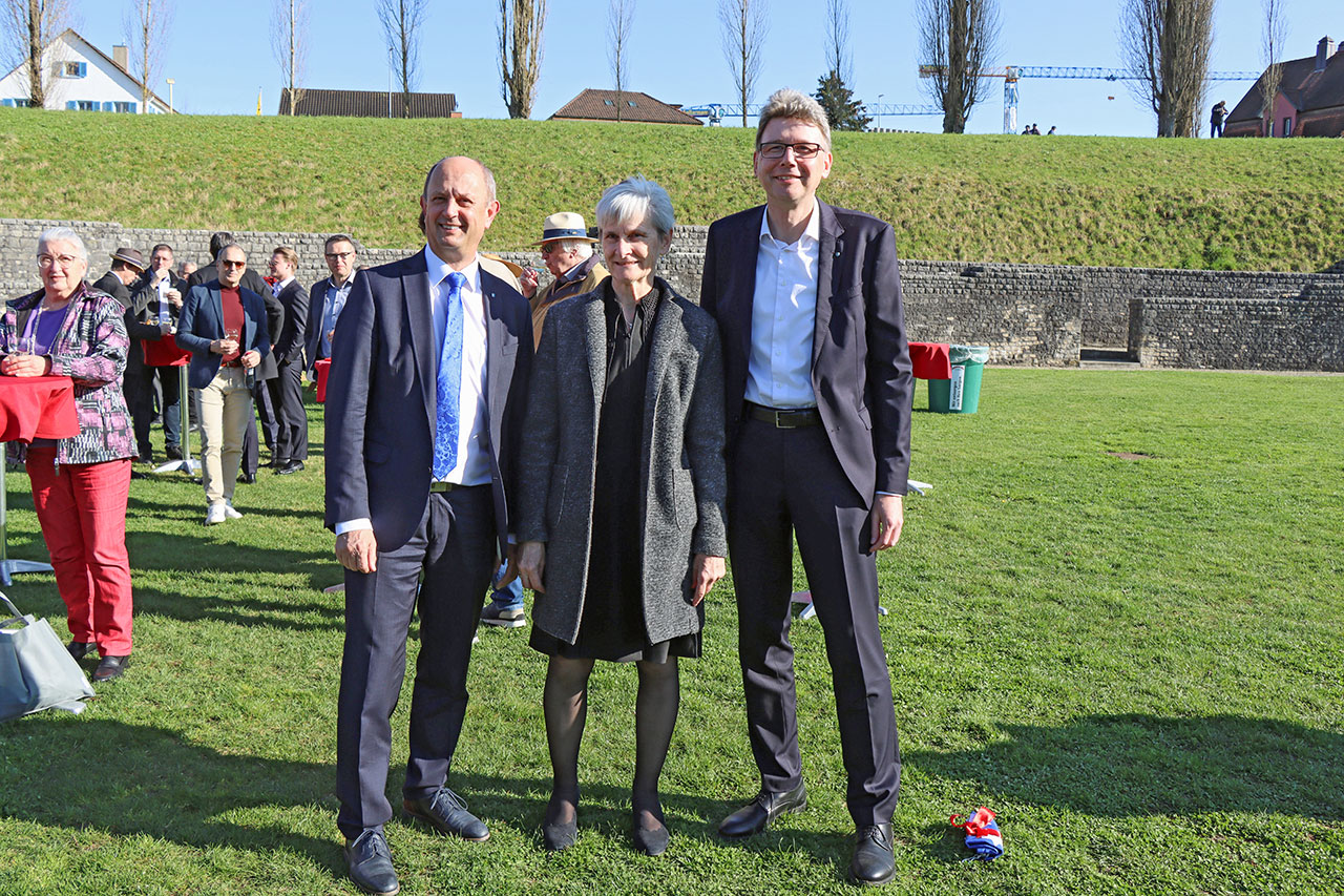 Landammann Dieter Egli (rechts) mit Gemeindepräsidentin Heidi Ammon und Grossratspräsident Markus Gabriel. (Bild: chr)