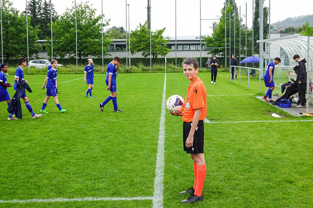 Am Spielfeldrand erzählt Vater Fabian Würth, dass er Jovan (Jahrgang 2011) mit fünf Jahren eine gelbe und eine rote Karte geschenkt habe. Da sich weder der Schulhof noch der Bolzplatz für das Ausüben der Schiedsrichtertätigkeit eigne, sei man vor 3½ Jahren selbst auf den Verband zugegangen. Heute stehen mit Turnieren insgesamt etwa 70 Spiele in seinem Spielbuch. Der Lohn für den Einsatz war das erste C-Junioren-Spiel am 10. Mai in Windisch. «Er ist regelkundig wie kein Zweiter», erzählt Fabian Würth über seinen Sohn, den er zu allen Spielen begleitet.