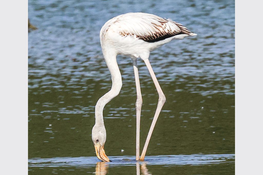Durch Trippeln mit den Füssen scheuchen die Flamingos ihre Beutetiere vom Boden auf. (Bilder: bhe)