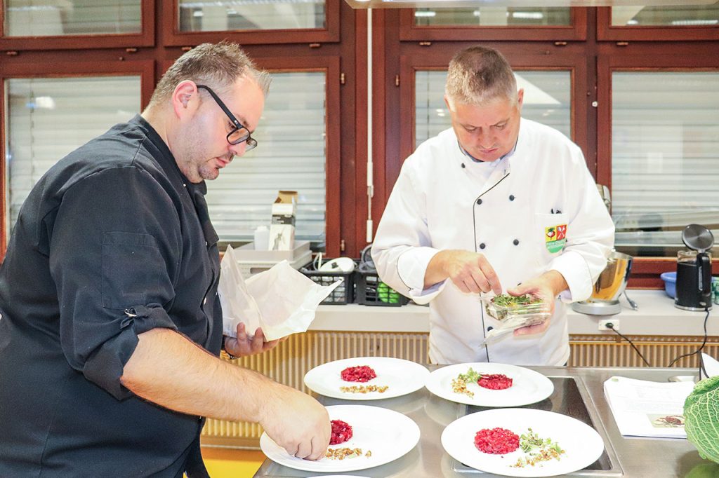 Zum Jubiläum liessen sich die Männer etwas Besonderes einfallen. Nach einem stimmungsvollen Apéro servierten sie ein raffiniertes Menü, das Tradition und Kreativität vereinte: Rote-Bete-Tatar mit Meerrettichschaum und Walnüssen als Entree, danach folgte ein Kalbskarree mit Balsamico-Honig-Sauce, mit Kartoffel-Kürbis-Baumkuchen und zweierlei Wirz. Zum süssen Finale überraschte ein Marronimuffin mit Birnensorbet und Mostcremeschaum.