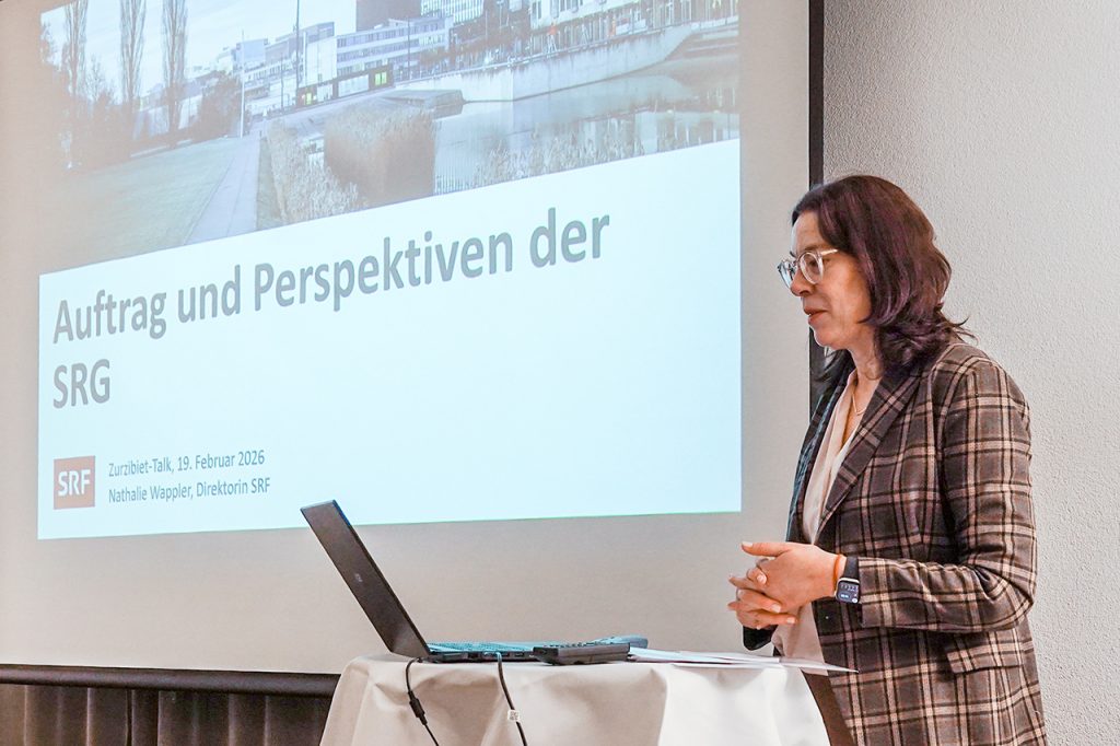 Nathalie Wappler betonte in ihrem Kurzreferat zu den Aufgaben der SRG sogleich die Vorteile der Schweizerischen Radio- und Fernsehgesellschaft. Mit einem viersprachigen Medienangebot aus 7 Haupt- und 17 Regionalstudios würde man heute auch von dort berichten, wo keine anderen Medien mehr aktiv seien. Die Mehrsprachigkeit beanspruche dabei 40 Prozent des Gesamtbudgets. Neben der Medienvielfalt sei es eine Frage der Solidarität – die Schweiz als Willensnation. Zudem hob Wappler die Bedeutung des Unterhaltungs- und Sportprogramms hervor: «Ein ‹Hopp Schwiiz› überwindet alle gesellschaftlichen Klassen.»