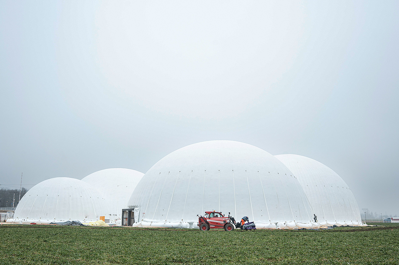Die Nachfolgeausstellung startet in zwei Wochen auf halbem Weg zwischen Spreitenbach und Dietikon auf dem Niderfeld. Gleich hinter der Zürcher Kantonsgrenze wurden dafür sechs zusammenhängende Kuppeln errichtet. Dabei handelt es sich um das grösste aufblasbare Zelt der Welt, in dem auf 2200 Quadratmetern die «Phänomena» untergebracht wird. Die grösste frei stehende Kuppel ist 15 Meter hoch, misst 30 Meter im Durchmesser und wird durch eine mit Druckluft gefüllte Doppelwand sowie wassergefüllte Schläuche zur Stabilisierung am Boden gehalten.