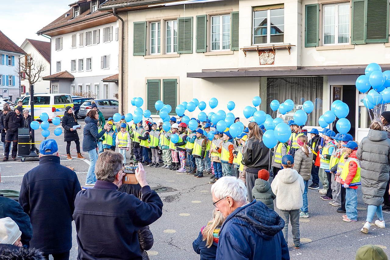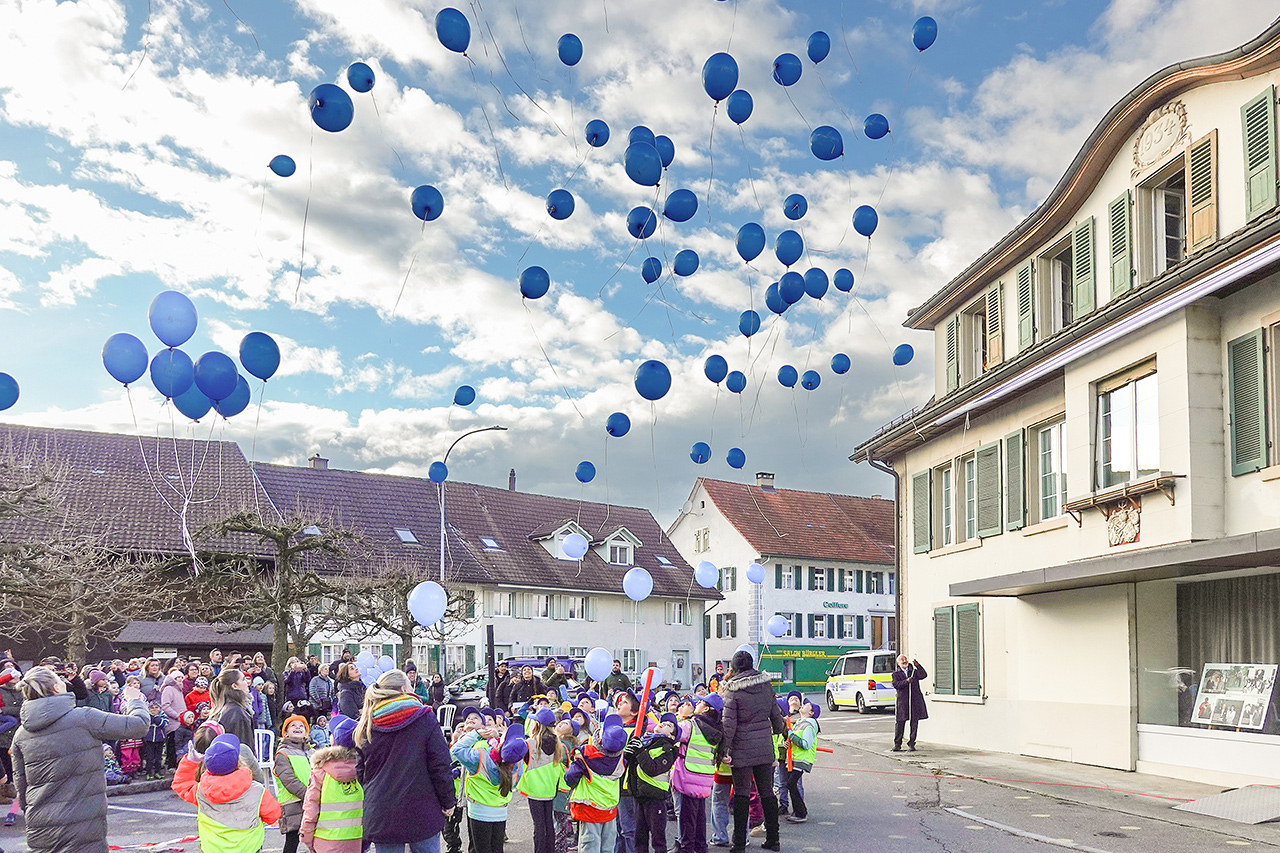 Für die Feierlichkeiten hatten die Schulkinder aus Lengnau zwei eigene Lieder vorbereitet: «Los, es gaht los» und «Mir bauet es Museum (wo fange mer ah)». Nach einer etwas holprigen Enthüllung des Banners über der Zentrumstür durften die Kinder die blauen Ballons gen Himmel steigen lassen.