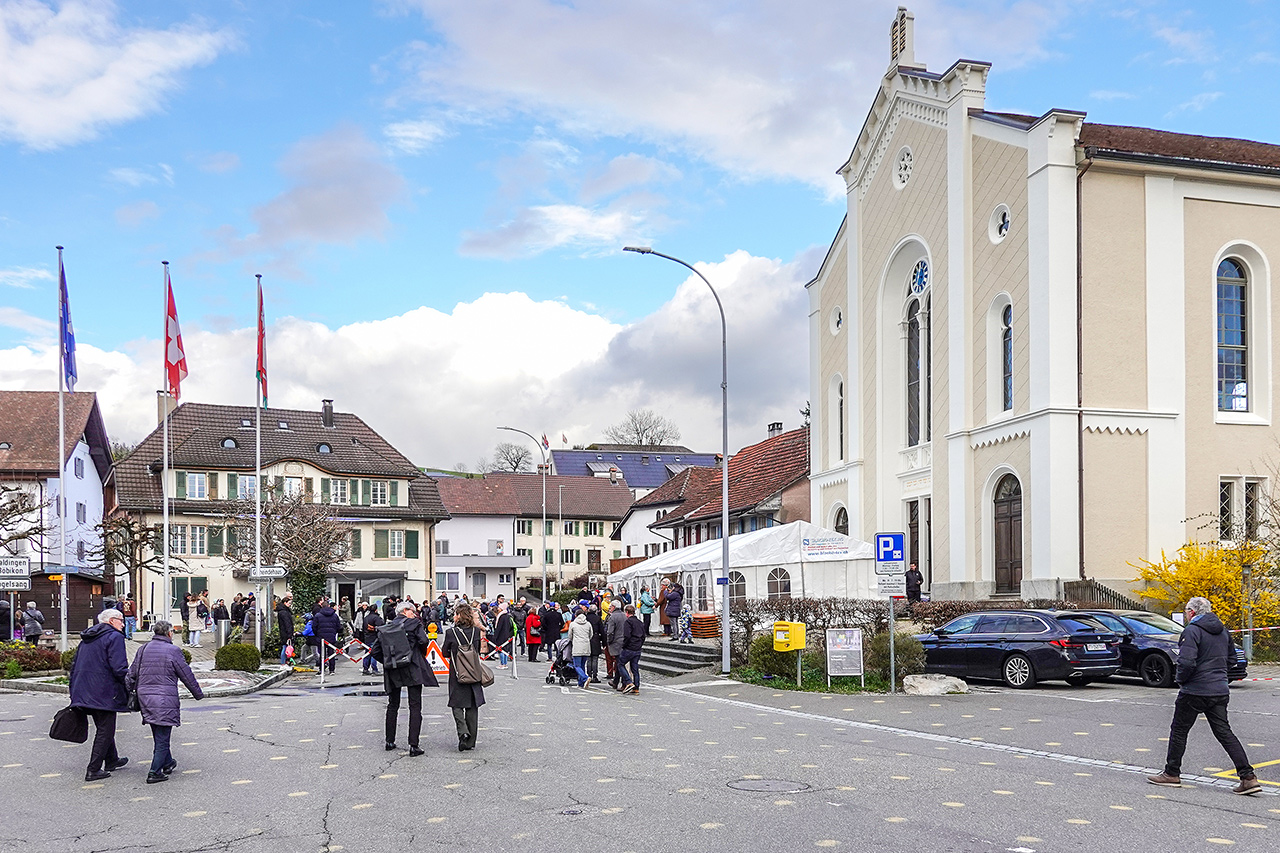 Nach weiteren Danksagungen richtete Ralph Friedländer, der Präsident des Schweizerischen Israelitischen Gemeindebunds (SIG), noch ein paar Worte an die Gemeinschaft und mahnte, dass sogar in der Schweiz heute Menschen auf offener Strasse aufgrund ihres jüdischen Glaubens angegriffen würden. Die Doppeltür sei somit ein Zeichen für die ganze Schweiz, dass ein Zusammenleben möglich sei. Kurz nach 18 Uhr zog es die Menschen in das Festzelt. Nicht nur wegen der tiefen Temperaturen, sondern auch weil eine Band den Apéro begleitete.